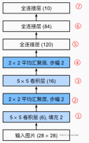 可以看到LeNet-5一共有5层:包括2个卷积层以及3个全连接层。就是这样通过几次卷积+池化的再送入最终的全连接层,我们就得到了十维的输出用于做分类结果。