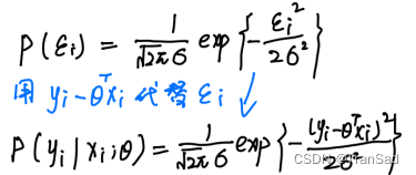 首先得明确:每个数据点都有一个误差项εi,且这些误差项服从标准正态分布(均值为0标准差σ)。因此带入正态分布公式,我们有: