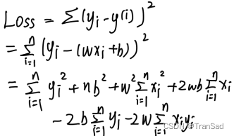 一步一步来,首先这个b是截距,带着它后面会看起来很麻烦,机器学习中常用的方式其实是在x中添加一个常数项1,然后把b“添加”到w中,这样直线就可以写成: