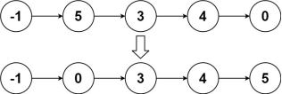 输入:head = [-1,5,3,4,0]输出:[-1,0,3,4,5]