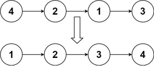 输入:head = [4,2,1,3]输出:[1,2,3,4]