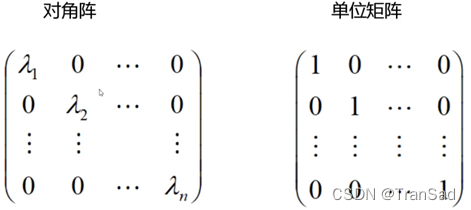 如果主对角线有值,且其他全是0,则这个矩阵是对角阵。在此基础之上,如果主对角线的值全都是1,则这个矩阵就是单位矩阵。
