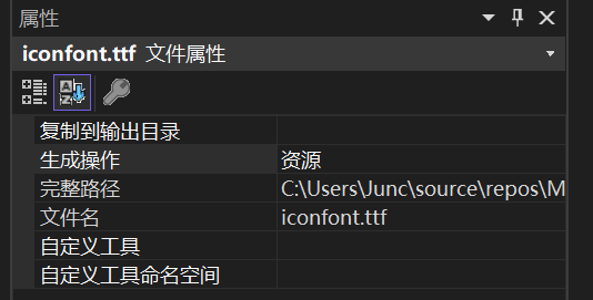 2. 项目中的iconfont.tff 文件,属性那里生成操作选择资源。