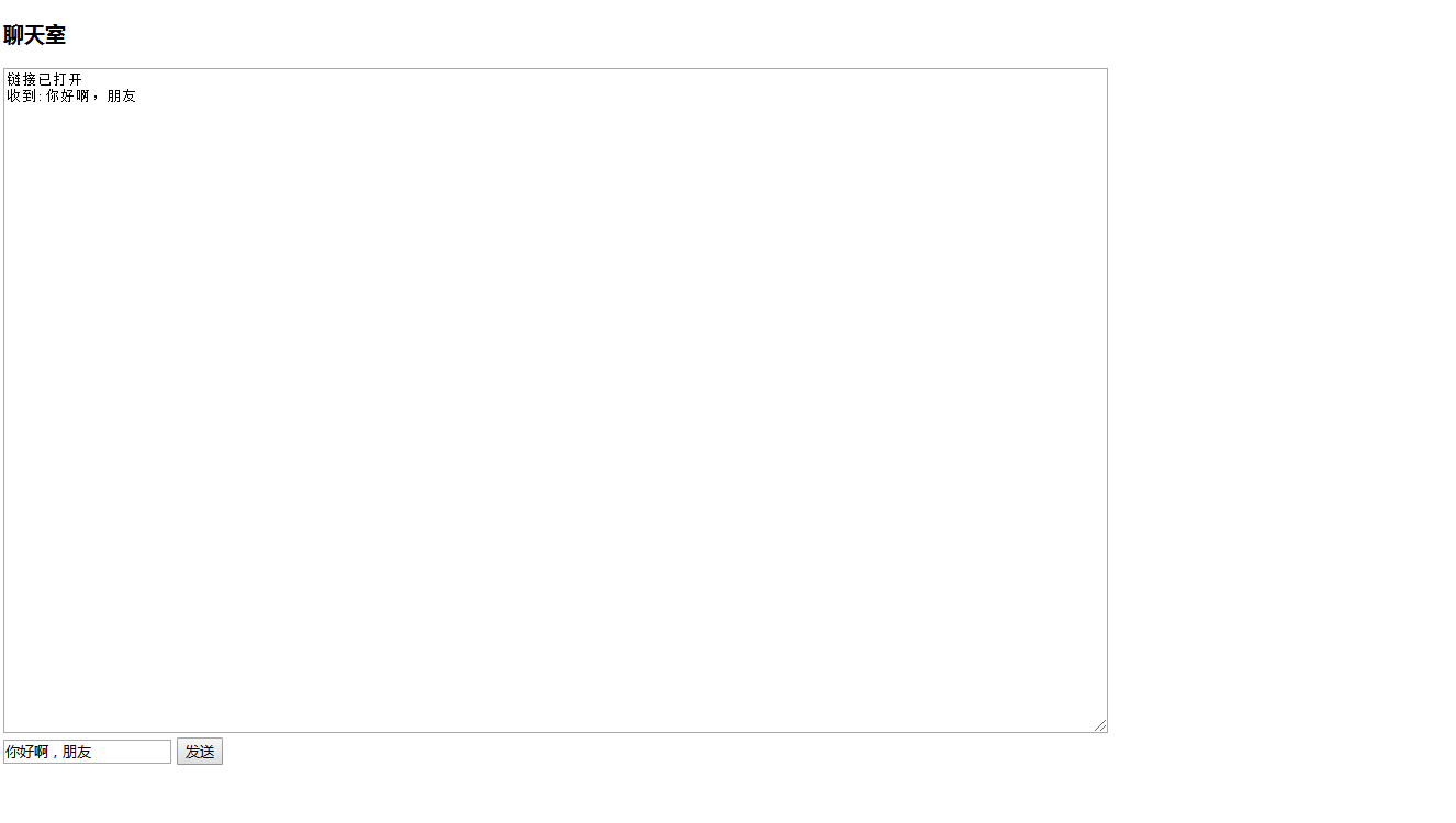 然后是前端的静态页面,随手写了一个简单的h5文件,没写样式比较丑,但是实现了功能,也有在vue中实现的,会在后续的多聊天室中补上