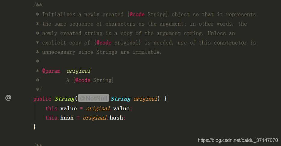 从new String()的源码可以看出,new String()会更改hash值,因为重新new出来的对象是会在堆中开辟内存来存储新对象的,内存地址不同,==所返回的值肯定是不同的。