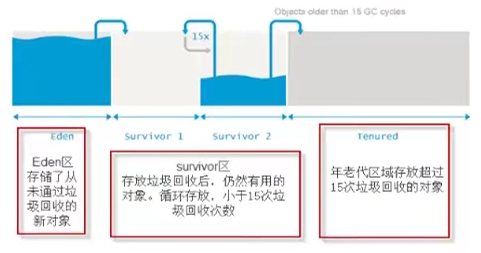 - 重复多次(默认15次),Survivor 区中没有被清理掉的对象,就会被复制到老年(Old/Tenured) 区中。