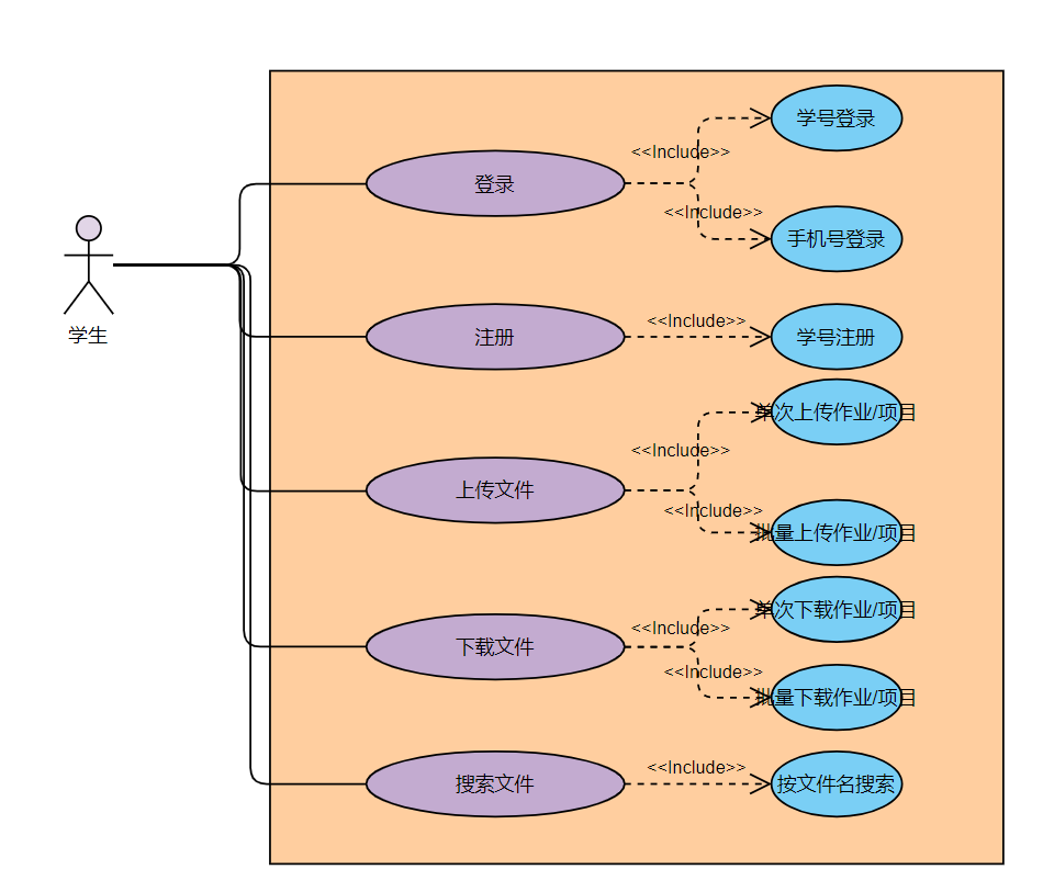 - 学生注册登录系统,根据自己的需求,进行资源共享:上传项目(找到自己本地的项目,填写相关信息,上传到平台);下载项目(根据资源id或者资源名称找到平台上的项目,进行下载);或进行在线测验已经作业:找到老师发布的该专业的测验题目,进行在线作答。