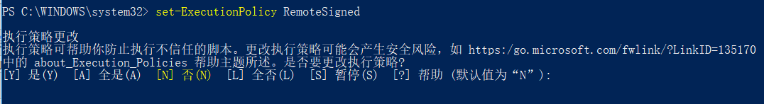 管理员方式打开powershell,键入set-ExecutionPolicy RemoteSigned