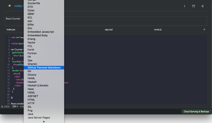 在Snippet笔记的标题部分中输入“.js”就可以设置语法突出显示。
