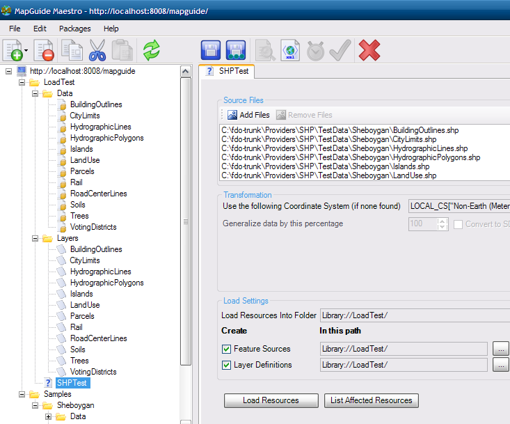 Jakie接管Maestro后又做了不少工作呢,现在加入了Load Procedures 能像MapGuide Studio方便的加载shp、SDF等资源到MapGuide 服务器了。此外还有表达式编辑器这个在Map 3D、MapGuide中才有的功能也加入到Maestro中。直接上图吧。