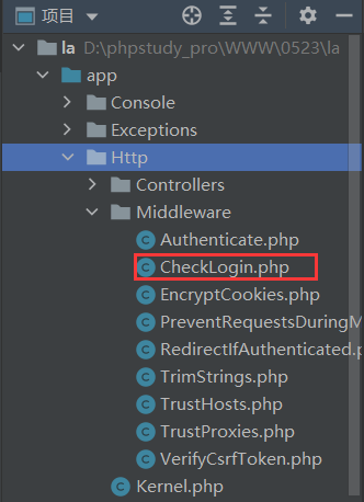 3.1修改 app/Http/Kernel.php 文件中,添加合适代码