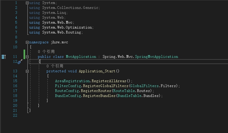 MvcApplication类继承于Spring.Web.Mvc.SpringMvcApplication类即可,根据需要override相关方就可以了