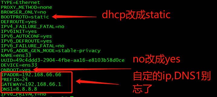 IPADDR=192.168.66.66 PREFIX=24 GATEWAY=192.168.66.1 DNS1=8.8.8.8