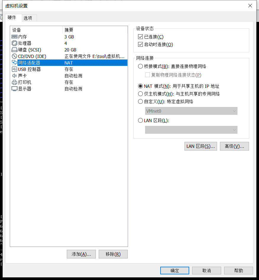 此处配置上之后主机的网络适配器,我的电脑是跟着就改了