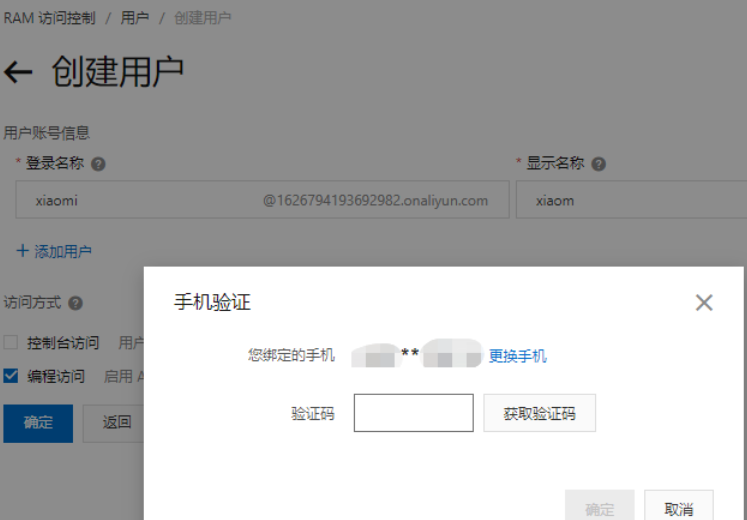4、这时会给你的手机发送验证码确认是否是本人操作,填写验证码后,用户创建成功