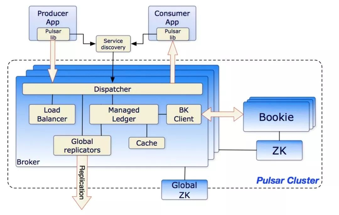 在Pulsar的架构中,数据计算和数据存储是单独的两个结构: