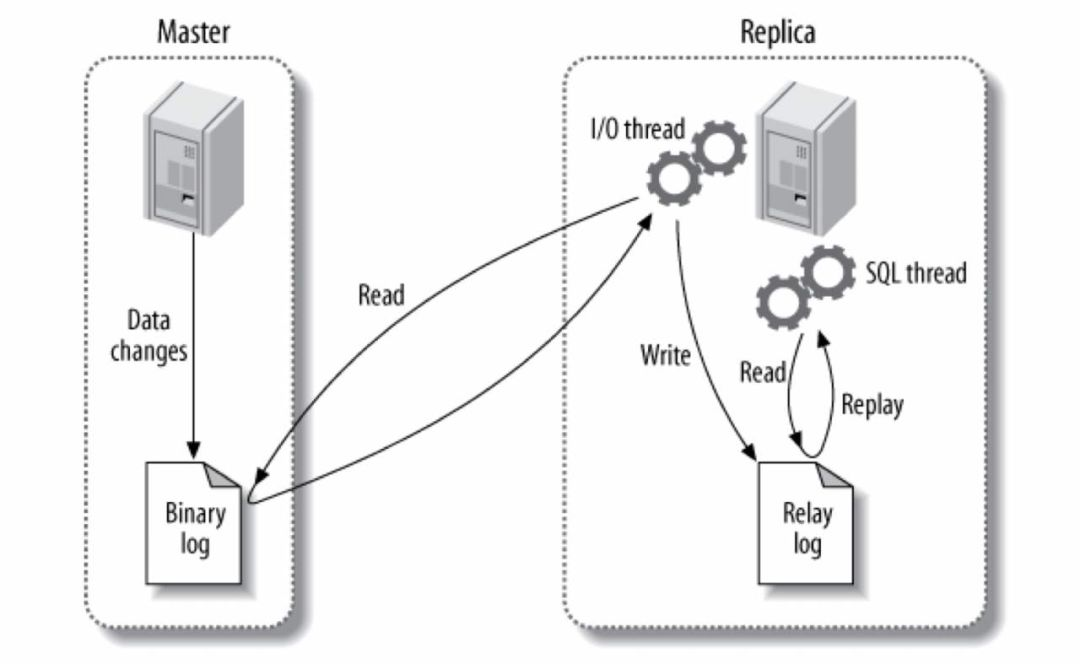 可以看见我们的master接收数据的变更,我们的从数据库读取binlog信息,重放binlog从而达到数据复制。