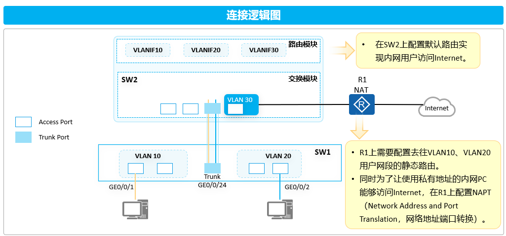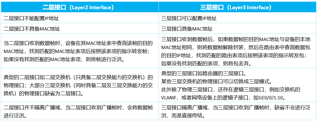 基于接口的VLAN划分依赖于接口类型,以下为交换机的三种接口: