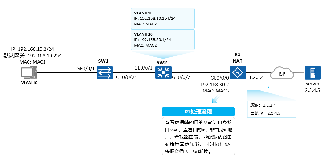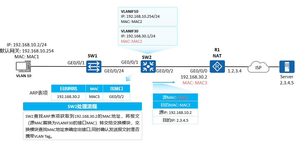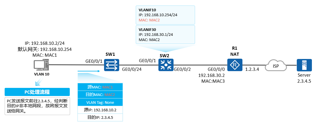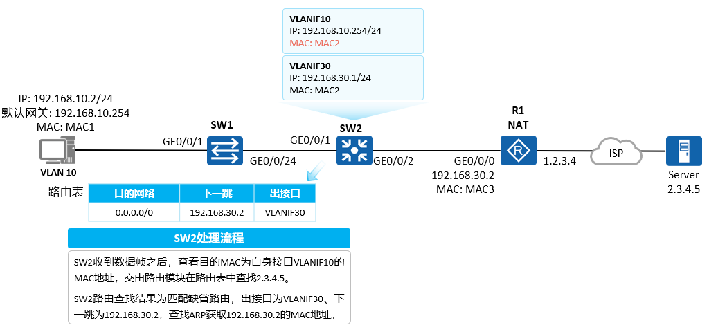 三层通信过程解析(实现不同VLAN间相互访问并访问外网)