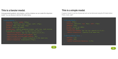For those using WebKit based browsers (Safari and Chrome), CSS3 effects and properties can help you create fast, simple modals by using transforms, animation, and some subtle design cues. - Matrix Animation with Webkit CSS3 | Demo