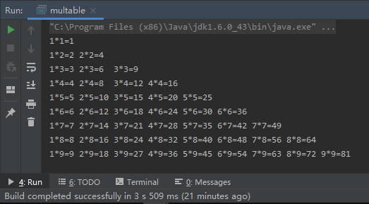 先使用两个 for 循环产生被乘数 j 与乘数 i ,在内层循环通过