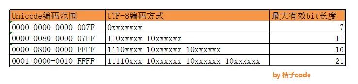 为了分析源码,我们先根据设计原则和UTF-8编码规则找下编码规律: