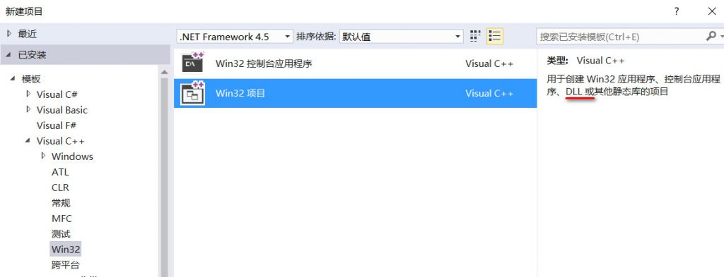 这里选择VS2015为例,新建一个dll项目的工程: