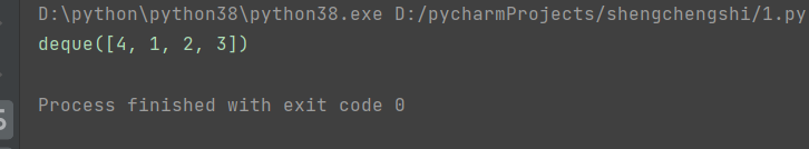 func = deque() func.append(1) # 右侧添加 func.append(2) func.append(3) func.appendleft(4) # 左侧添加 print(func)