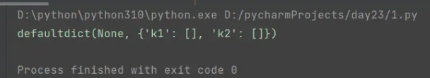 # 4.默认值字典 defaultdict # 有集合 [1,4,7,13,16,18,24] # 将所有大于13值保存到字典的的第一个key里,大于13的保存到第二个key里 # {'k1':[], 'k2':[]} from collections import defaultdict res = defaultdict(k1=[],k2=[]) print(res)