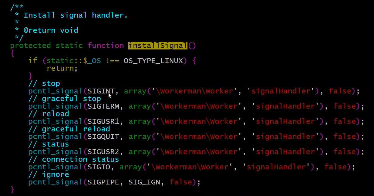 static::installSignal(); #安装信号