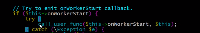 就可以达到回调了 $this(就是当前worker实例 )当个这个$this->onWorkerStart属性的参数,就注册进去了