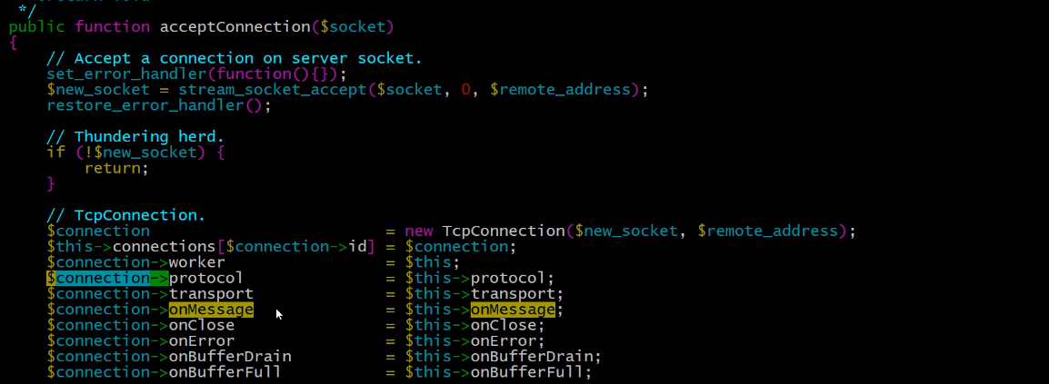 public function acceptConnection($socket) 是接受一个连接