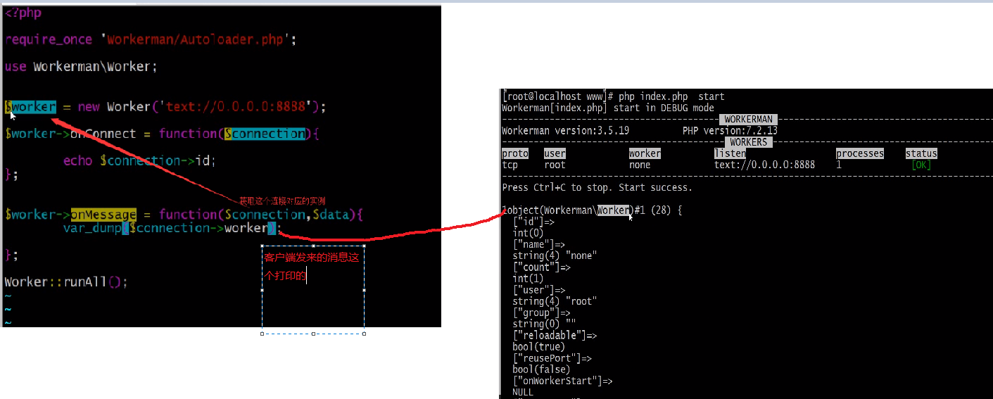 调用worker实例 。就可以获取这个$connection->worker的所有连接connection