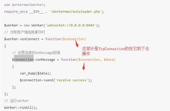 作用与Worker::$onMessage回调相同,区别是只针对当前连接有效,也就是可以针对某个连接的设置onMessage回调。