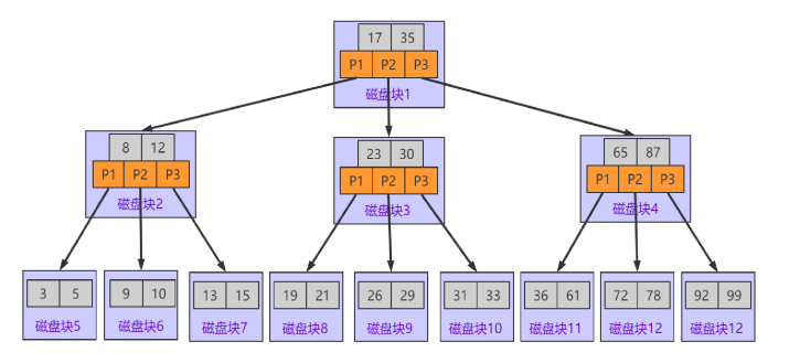 但是平衡二叉树在数量大的时候树高会很高,再查询末端节点会递归多次才能找到数据,并且每个阶段只存一个数据会有多次的IO操作才能找到数据。