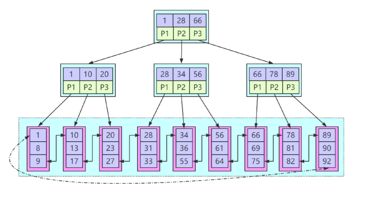 在B-树结构中,我们发现,我们的关键字在某一个节点进行匹对成功就完成数据区内容的返回.但是在B+树结构中,我们采用的是闭合区间的比对方式即数据的最终加载一定会在叶子节点上.在B-树结构中,有可能针对一张表的查询,有些数据需要3次IO.有些只需要1次IO.前后的查询效率跌跌宕宕不稳定.但是在B+树结构中一定恒定的IO次数,带来更稳定的查询效率.基于以上的对比和总结,MySQL最终选择了B+Tree作为了索引的数据结构