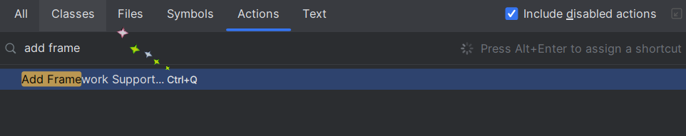 2,打开idea,右键项目,找到add frame support(添加框架结构),我这里没有,所以我是在help,find action搜索add frame support(注意要先点击选中项目)