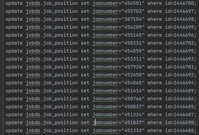 给几百个职位添加jobnumber,即如下语句: