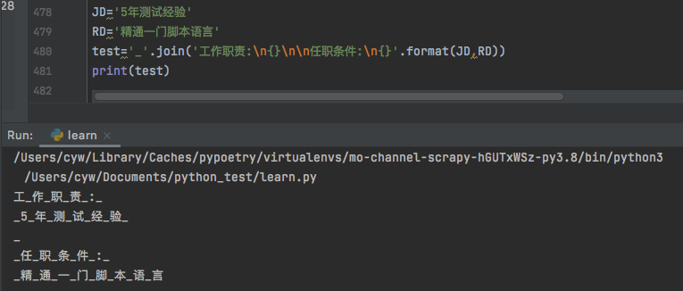 二:join将 容器对象 拆分并以指定的字符将列表内的元素(element)连接起来,返回字符串