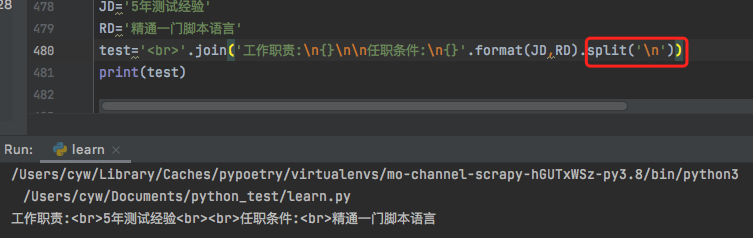 所以,应该先使用split返回一个字符串列表