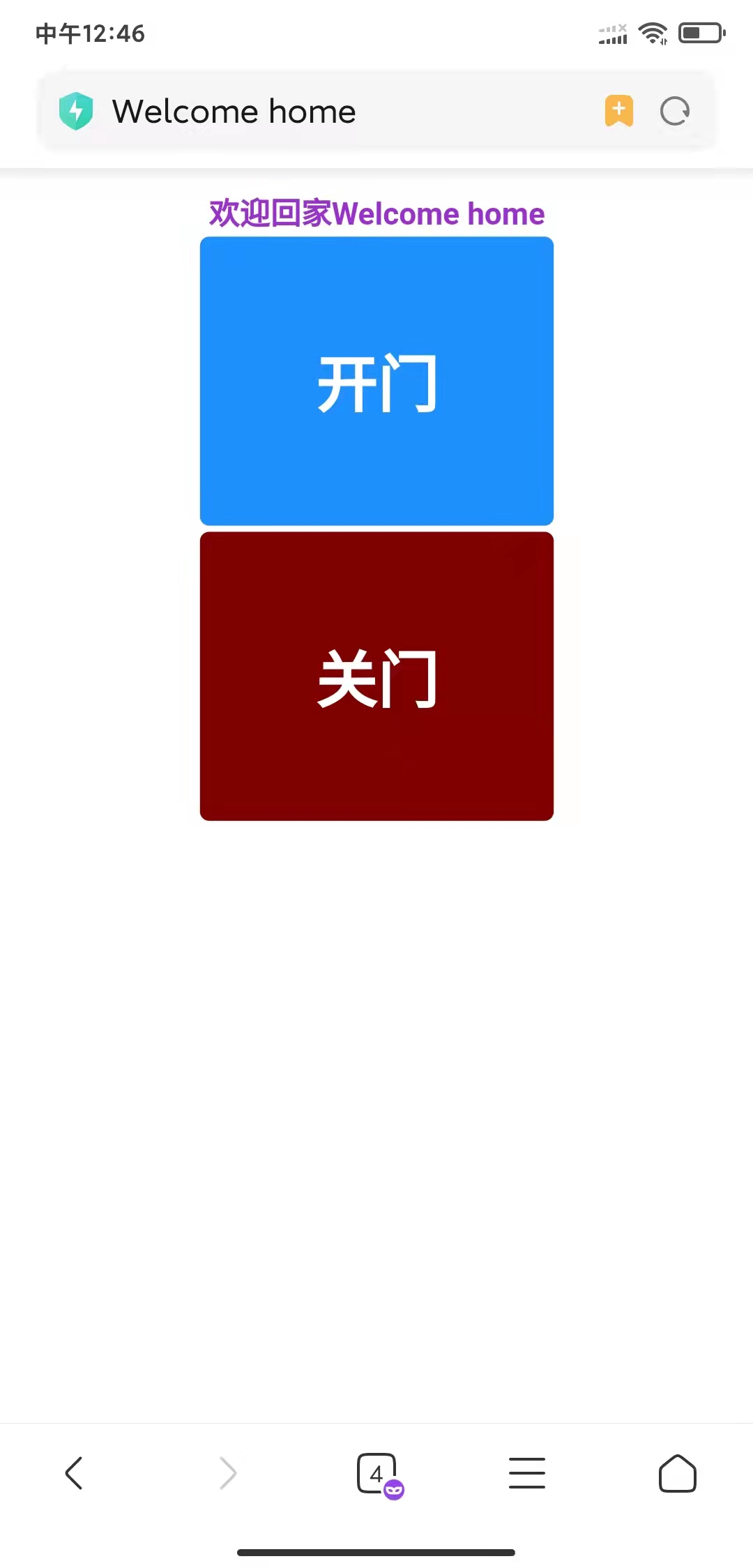 #include <ESP8266WiFi.h> // 本程序使用 ESP8266WiFi库 #include <ESP8266WiFiMulti.h> // ESP8266WiFiMulti库 #include <ESP8266WebServer.h> // ESP8266WebServer库 #include <Servo.h>//伺服舵机Servo库 Servo servo; // 建立Servo对象,对象名称是 'servo' ESP8266WiFiMulti wifiMulti; // 建立ESP8266WiFiMulti对象,对象名称是 'wifiMulti' ESP8266WebServer esp8266_server(80);// 建立网络服务器对象,该对象用于响应HTTP请求。监听端口(80) void setup(void){ Serial.begin(115200); // 启动串口通讯 pinMode(LED_BUILTIN, OUTPUT); //设置内置LED引脚为输出模式以便控制LED wifiMulti.addAP("TP-LINK_A7ED", "xiang/*0621?"); // 将需要连接的一系列WiFi ID和密码输入这里 // wifiMulti.addAP("ssid_from_AP_2", "your_password_for_AP_2"); // ESP8266-NodeMCU再启动后会扫描当前网络 // wifiMulti.addAP("ssid_from_AP_3", "your_password_for_AP_3"); // 环境查找是否有这里列出的WiFi ID。如果有 Serial.println("Connecting ..."); // 则尝试使用此处存储的密码进行连接。 int i = 0; while (wifiMulti.run() != WL_CONNECTED) { // 此处的wifiMulti.run()是重点。通过wifiMulti.run(),NodeMCU将会在当前 delay(1000); // 环境中搜索addAP函数所存储的WiFi。如果搜到多个存储的WiFi那么NodeMCU Serial.print(i++); Serial.print(' '); // 将会连接信号最强的那一个WiFi信号。 } // 一旦连接WiFI成功,wifiMulti.run()将会返回“WL_CONNECTED”。这也是 // 此处while循环判断是否跳出循环的条件。 // WiFi连接成功后将通过串口监视器输出连接成功信息 Serial.println('\n'); Serial.print("Connected to "); Serial.println(WiFi.SSID()); // 通过串口监视器输出连接的WiFi名称 Serial.print("IP address:\t"); Serial.println(WiFi.localIP()); // 通过串口监视器输出ESP8266-NodeMCU的IP 便于观察WiFi链接情况 esp8266_server.begin(); // 启动网站服务 esp8266_server.on("/", HTTP_GET, handleRoot); // 设置服务器根目录即'/'的函数'handleRoot' esp8266_server.on("/LED", HTTP_GET, handleLED); // 设置处理LED控制请求的函数'handleLED' 意思就是客户端发过来的信息进行处理 这是第一个按钮信息 esp8266_server.on("/LED2", HTTP_GET, handleLED2);// 设置处理LED2控制请求的函数'handleLED2'意思就是客户端发过来的信息进行处理 这是第二个按钮信息 //esp8266_server.on("/LED2", HTTP_POST, handleLED3);// 设置处理LED2控制请求的函数'handleLED2'意思就是客户端发过来的信息进行处理 这是第二个按钮信息 esp8266_server.onNotFound(handleNotFound); // 设置处理404情况的函数'handleNotFound' 崩溃信息 Serial.println("HTTP esp8266_server started");// 告知用户ESP8266网络服务功能已经启动 观察ESP8266网络服务是否启动成功 } void loop(void){ servo.attach(D0); esp8266_server.handleClient(); // 检查http服务器访问 一直检查有没有客服端访问服务器 } /*设置服务器根目录即'/'的函数'handleRoot' 该函数的作用是每当有客户端访问NodeMCU服务器根目录时, NodeMCU都会向访问设备发送 HTTP 状态 200 (Ok) 这是send函数的第一个参数。 同时NodeMCU还会向浏览器发送HTML代码,以下示例中send函数中第三个参数, 也就是双引号中的内容就是NodeMCU发送的HTML代码。该代码可在网页中产生LED控制按钮。 当用户按下按钮时,浏览器将会向NodeMCU的/LED页面发送HTTP请求,请求方式为POST。 NodeMCU接收到此请求后将会执行handleLED函数内容*/ void handleRoot() { String str= "<!DOCTYPE html><html><head><meta charset=\"utf-8\"><title>Welcome home</title><style>.button{background-color:DodgerBlue;border-radius:12px;color:white;padding:130px 150px;text-align:center;text-decoration:none;display:inline-block;font-size:80px;margin:4px 2px;cursor:pointer}.button:hover{background-color:Plum}.button2{background-color:Maroon}.button:active{background-color:DodgerBlue;box-shadow:0 5px#666;transform:translateY(4px);</style></head><body><h1 style=\"text-align:center;color:DarkOrchid ;font-size:40px;\">欢迎回家Welcome home<div align=\"center\"><a href=\"/LED\"method=\"POST\"class=\"button\">开门</a><head></head><div align=\"center\"><a href=\"/LED2\"method=\"POST\"class=\"button button2\">关门</a><head>"; esp8266_server.send(200, "text/html", str); //给客户端返回一段信息,这段信息是一段HTML文件 } //处理LED控制请求的函数'handleLED' void handleLED() { // 假如按第一个按钮执行以下代码 servo.write(180);delay(300); // 控制舵机旋转到180度 servo.write(0);delay(300); // 控制舵机旋转到0度 Serial.println("正在输出LED"); esp8266_server.sendHeader("Location","/"); // 跳转回页面根目录