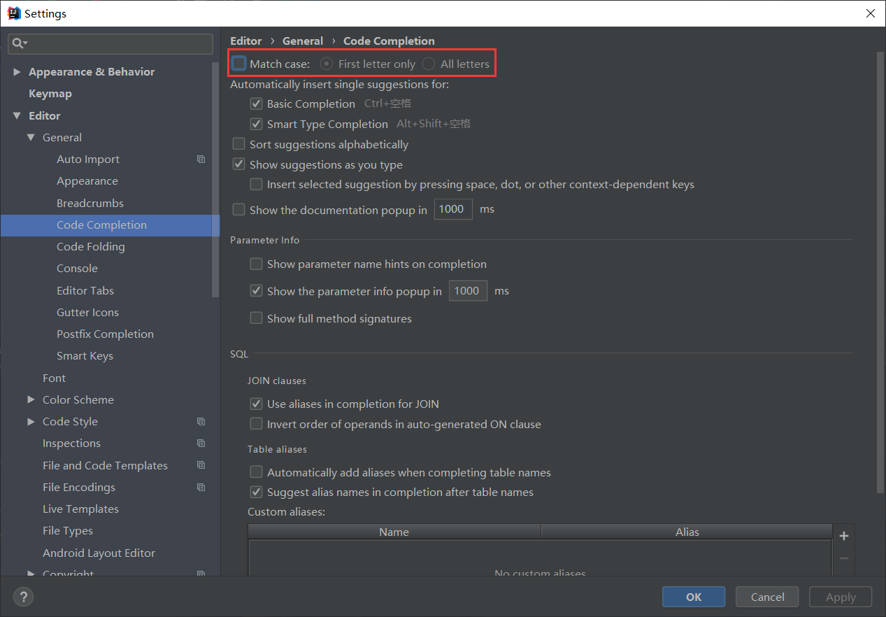 开启大小写忽略