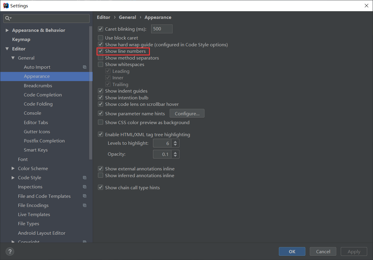 开启行号显示