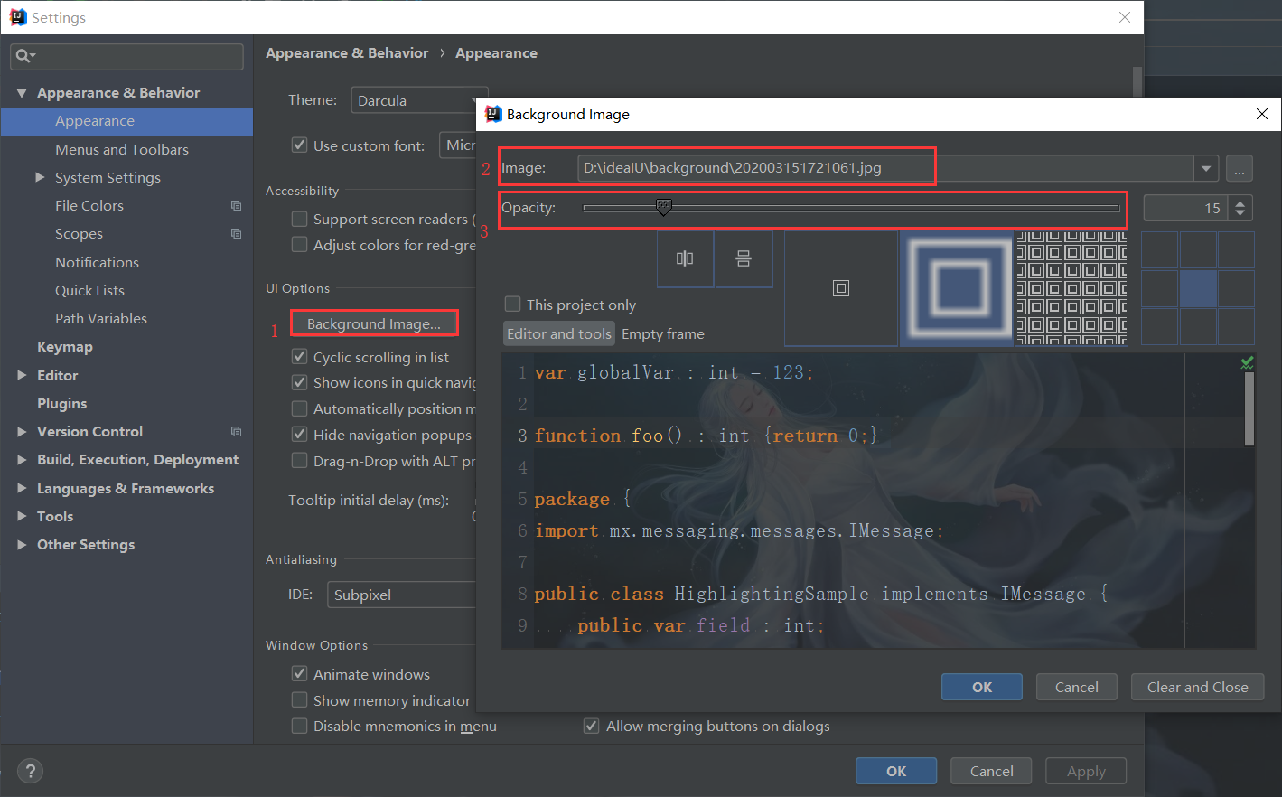 2018.3及之前版本需先安装Background Image Plus插件