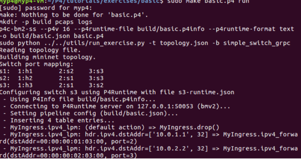 学习P4官方示例教程,链接:https://github.com/p4lang/tutorials,了解P4-16版本的基本语法、基于V1Model的P4代码结构,完成如下练习: