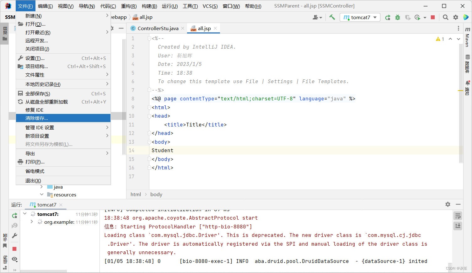 2. 如果未解决可以在file中强制清除缓存,再重启(本人亲测有效)