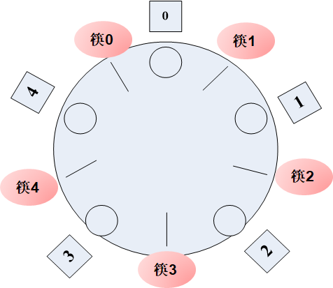 V(chopstick[(i+1)%5]); // 释放右手边的筷子