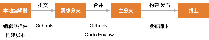 流程化的意思是将自动化代码质量检查和Code Review与代码流动的过程绑定,从而保证所有上线的代码都经过机器与人工多个环节的检查。