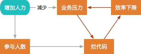 为了应对业务压力,常见的做法就是向项目中增加人力,但是单纯地增加人力的话,会因为风格不一致、沟通成本上升等原因导致烂代码更多。