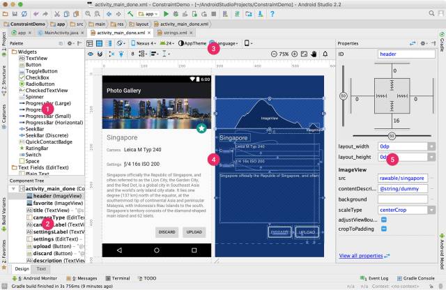 关于 Constraint Layout 的详细用法介绍这里就不多说了,Google 官方有个教程,想学习的可以见这里: